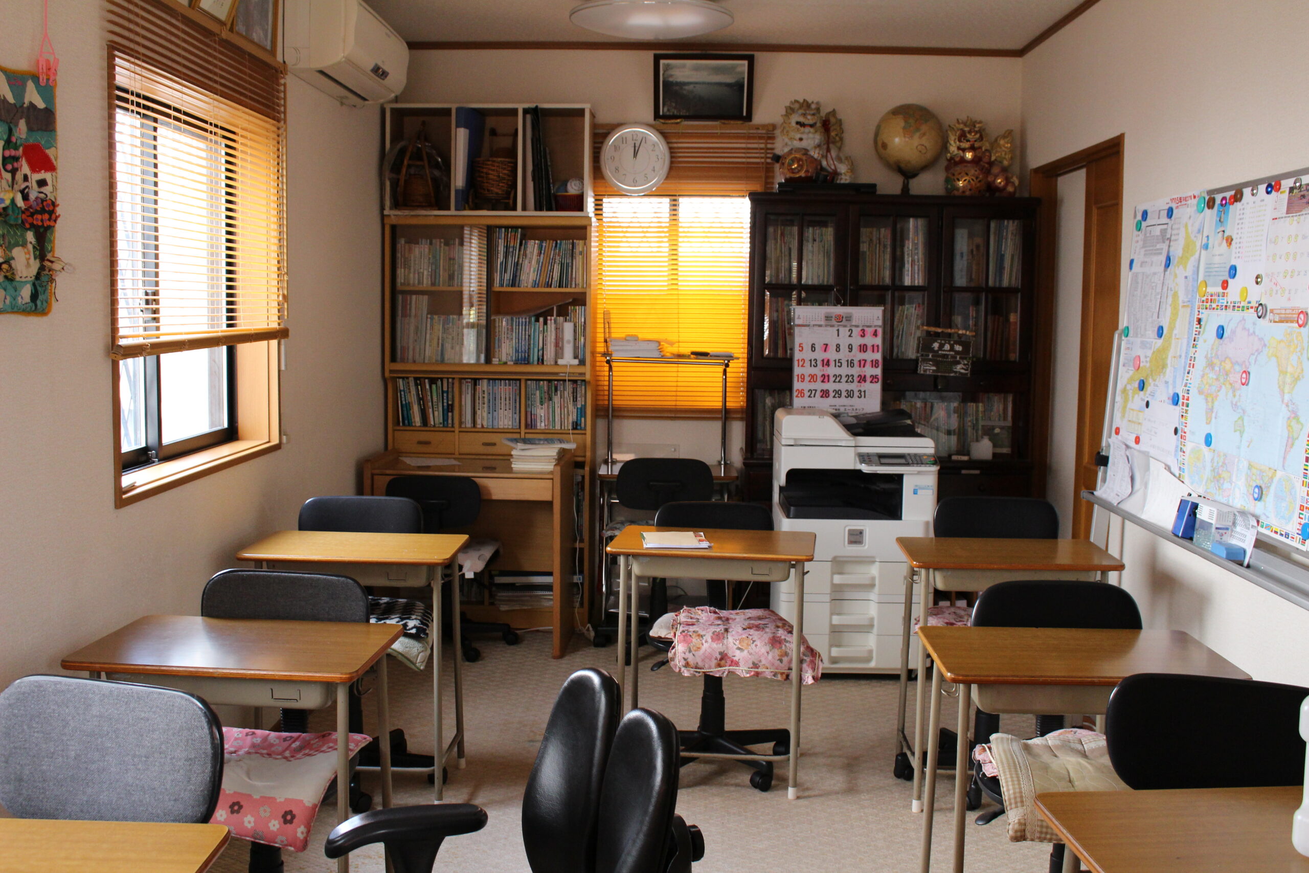 「勉強は、時間、場所を問わず、いつでも、どこでも出来る」、「勉強の場所を変える為だけの、移動する時間がもったいない」、以上の理由より、自習室は設置しておりません。